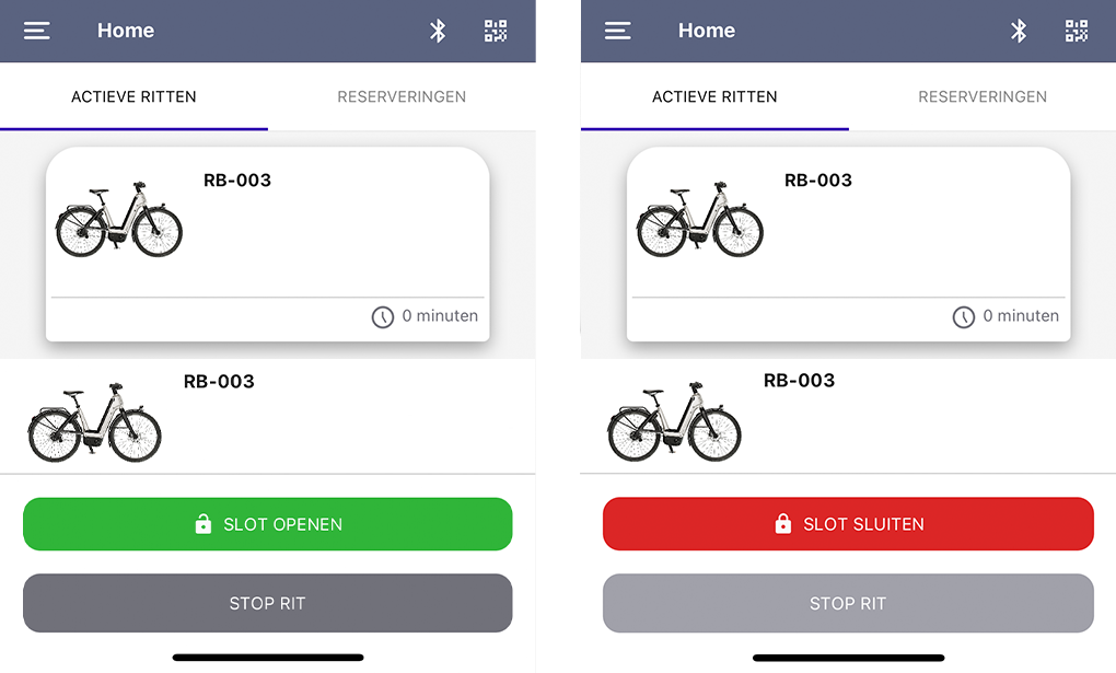- Lever de fiets in en zet hem op de oplaadtegel, sluit het slot en stop de rit.