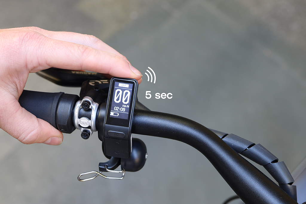 - Activeer de fiets door het display aan te zetten van de ontgrendelde fiets.